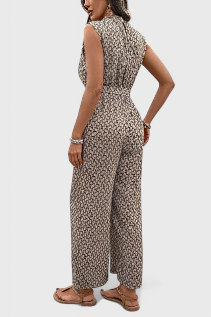 Sebevědomá a nenucená, Carmela přináší odvážný obrat do letního šatníku. Tento overal bez rukávů s nápadným geometrickým vzorem je vyroben z prodyšné směsi bavlny, která se pohybuje s vámi. Pás na zavazování lichotí postavě a široké nohavice vytvářejí ležérní, ale rafinovaný vzhled – ideální pro procházky na slunci, stylové brunche nebo neformální odpolední setkání.